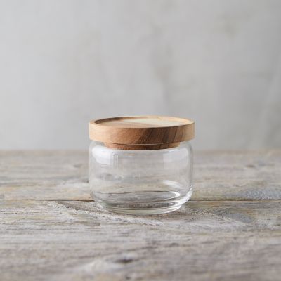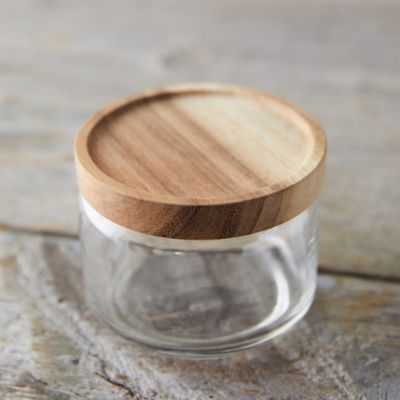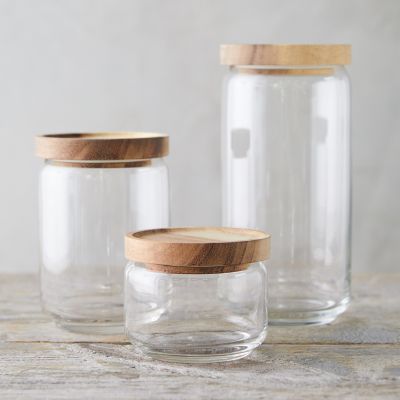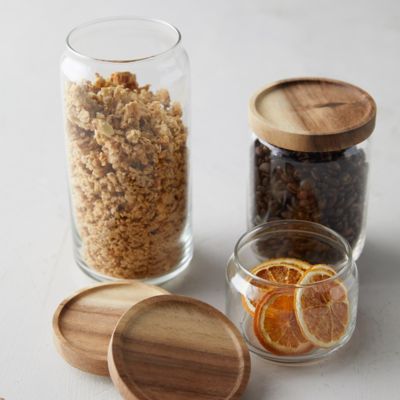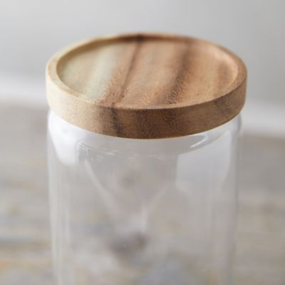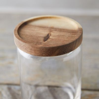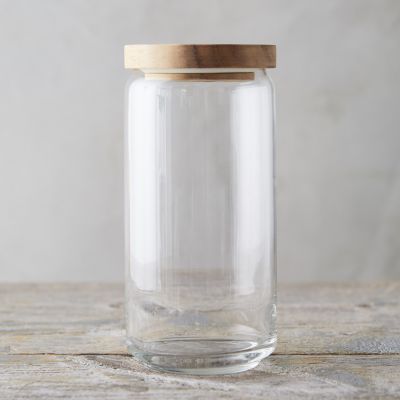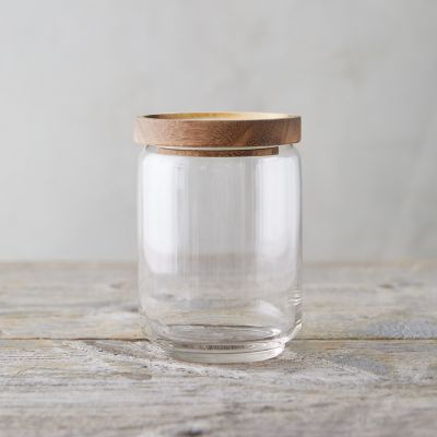 Practical and elegant, this glass food storage canister is outfitted with a rustic acacia wood top.