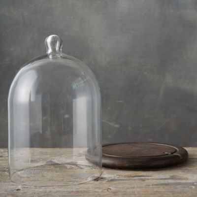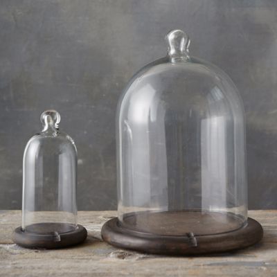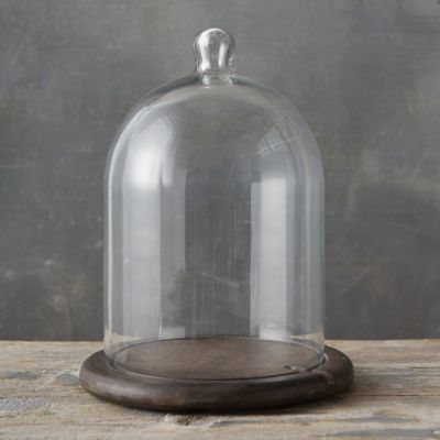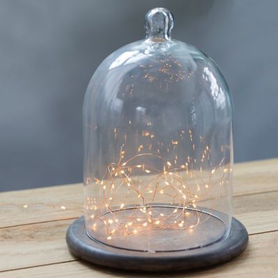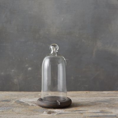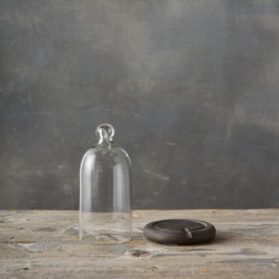 Showcase a beautiful candle or corral a strand of dainty lights in this stunning wood and glass duo. Its wooden base is crafted with a divot, perfect for threading strands of lights inside.