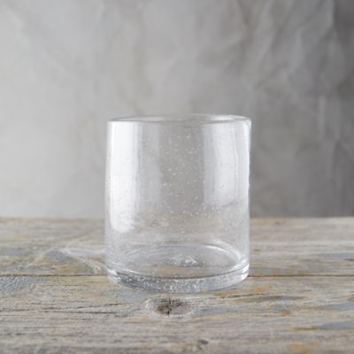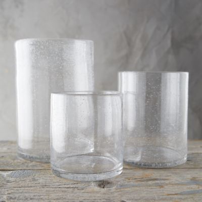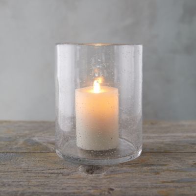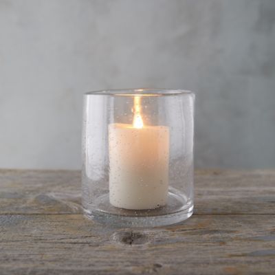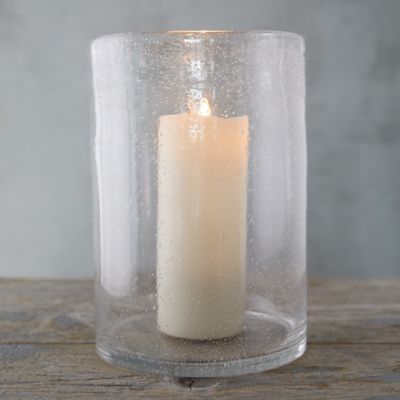 This simple glass hurricane gets a textured bubble finish.