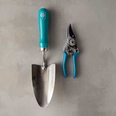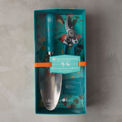 Prettily packaged in a floral box, this garden gift set includes two compact and lightweight tools. The engraved trowel features a stainless steel blade and wooden handle, while the matching pruner features a high carbon steel blade and alloy handles.