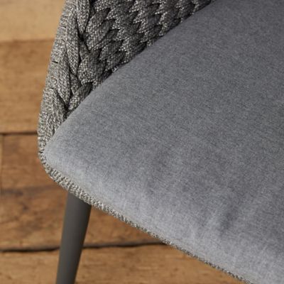 Crafted with a durable aluminum frame covered with a lightweight woven rope fabrication, this side chair offers support and durability. Sunbrella cushions are comfortable, moisture-safe and, sun-proof.