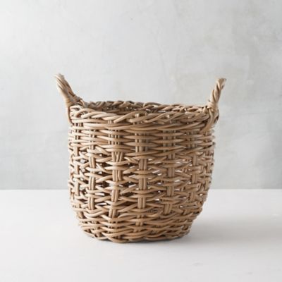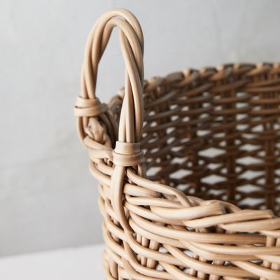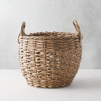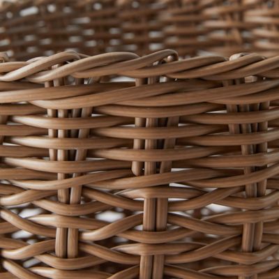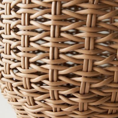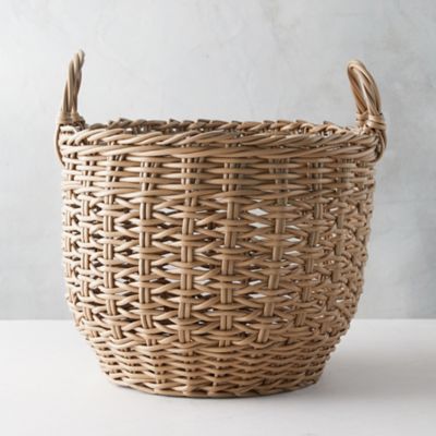 Crafted from durable faux wicker, this chunky basket is perfect for storing throws, toys, books, and more.