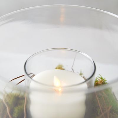 This double-layered hurricane offers an interior column for a favorite candle, and a surrounding space to add decorative plantings, cuttings, or stone.