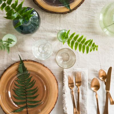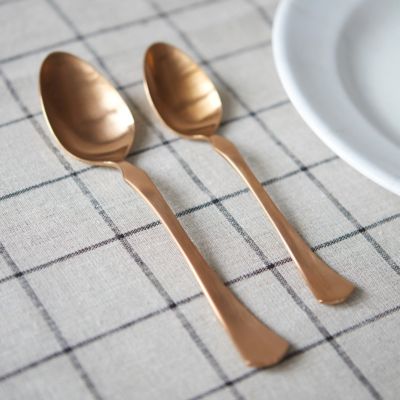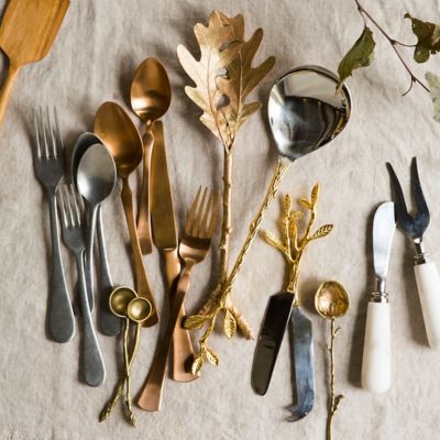 Made from durable, titanium-coated stainless steel, a copper finish adds lustrous sheen to the timeless shape of this copper flatware set.