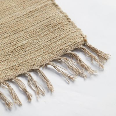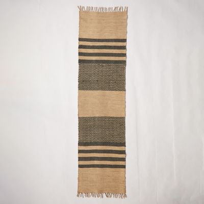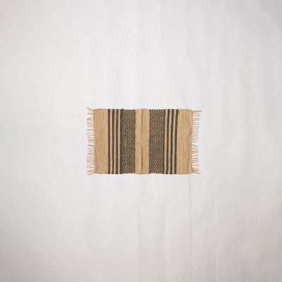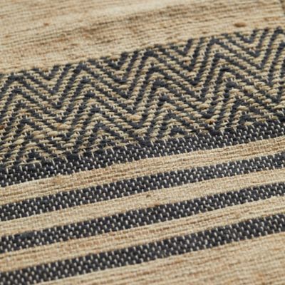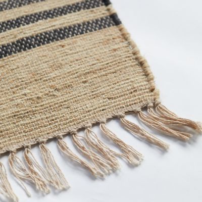 Hand-woven by skilled artisans, this natural jute doormat is dressed up by alternating bands of gray stripes.