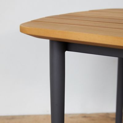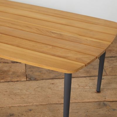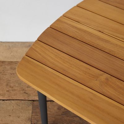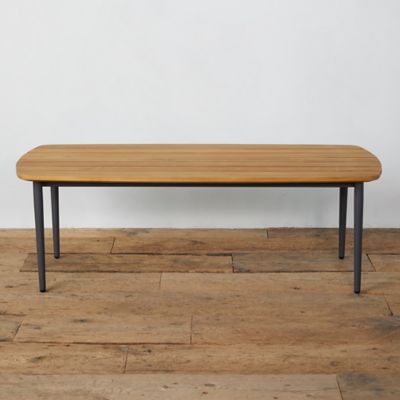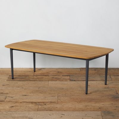 With a matte charcoal aluminum frame and natural teak top, this coffee table blends modern design sensibilities with classic materials for a timeless outdoor centerpiece.