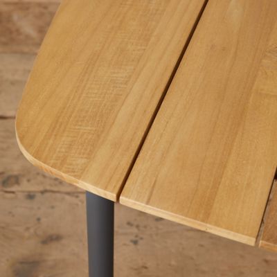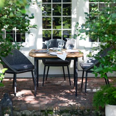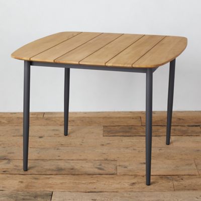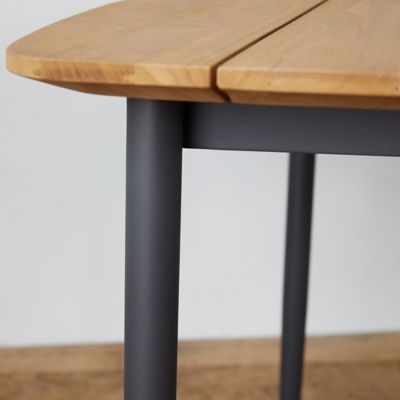 With a matte charcoal aluminum frame and natural teak top, this dining table blends modern design sensibilities with classic materials for a timeless outdoor centerpiece.