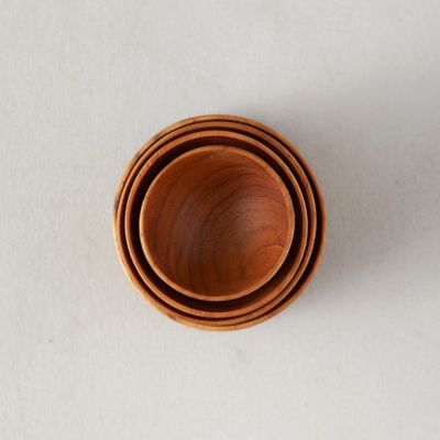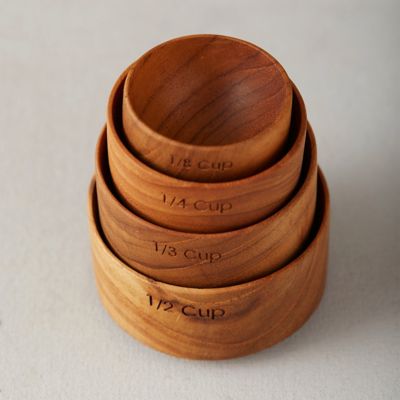 Handcrafted in Thailand by local artisans, these beautiful polished teak measuring cups elevate your cake-making and do double duty as miniature condiment bowls.