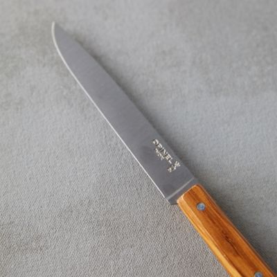 Classic steak knives crafted with a durable olivewood handle and stainless steel blade, making this set a dinner table essential.