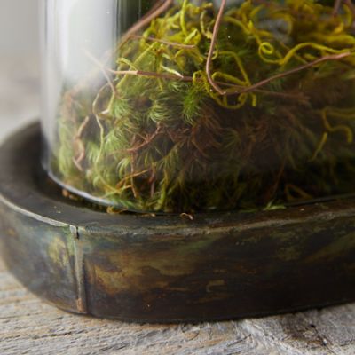 Showcase a beautiful candle, foraged finds, or corral a strand of dainty lights in this stunning oxidized iron and glass duo.
