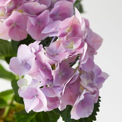 Topped with large, full clusters of bright pink blooms, this giftable hydrangea arrives ready for display in a decorative waved pot.