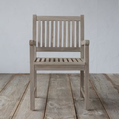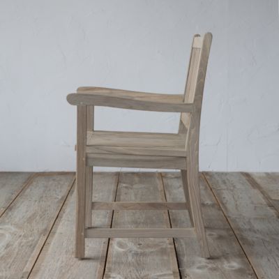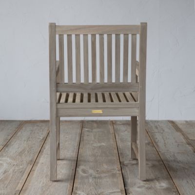 Finished by hand, this traditional dining chair is made from natural teak and treated with an Instant Gray finish for a weathered appearance and years of outdoor durability.