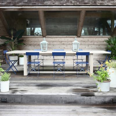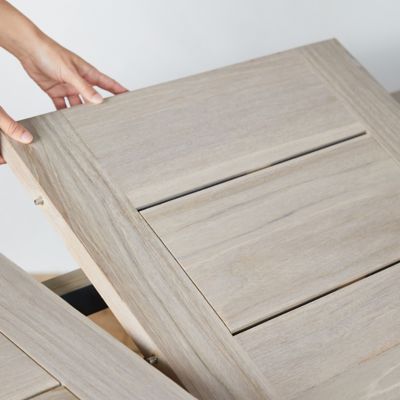 Crafted exclusively for terrain, this practical extension table makes room for more guests at outdoor gatherings. Each table is treated for outdoor use with our Instant Gray + Teak Shield finish, which gives the wood a silvery, aged patina and prevents wear and tear from sun, heat, or rain.