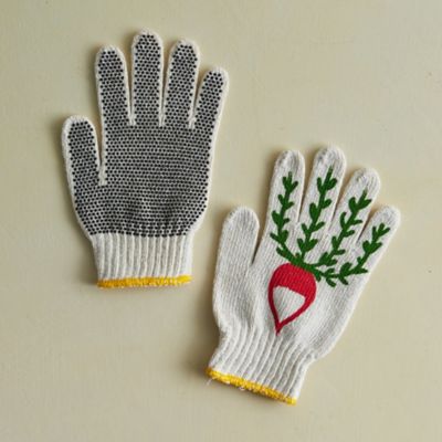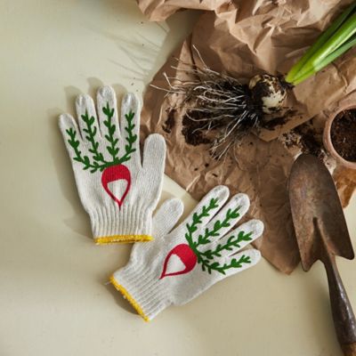 Locally made in Utah, these hard-wearing garden gloves are handscreen-printed with red radishes with leaves that delicately climb up every finger. Rubber grips on palms to grab even the most noxious of weeds.