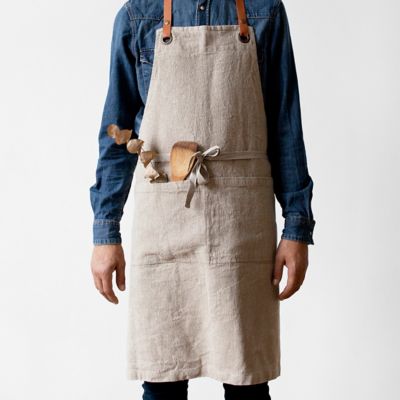 Clean lines and big pockets make this soft linen apron perfect for everyday use.