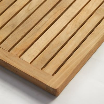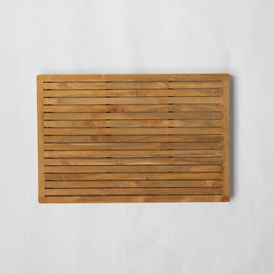 Handmade from recycled teak, this slatted doormat is a durable and elegant accent for the entryway.