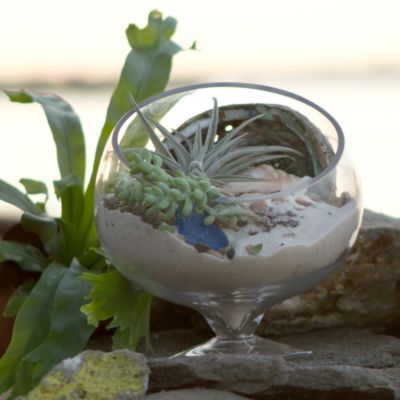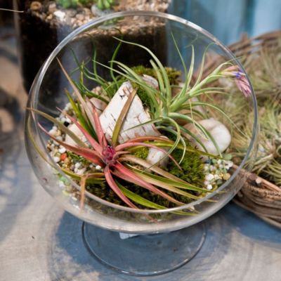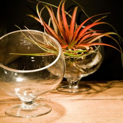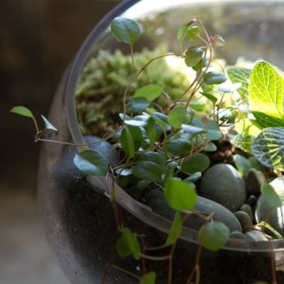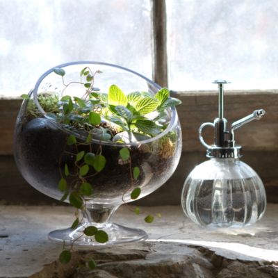 An angled opening provides a view into your glass garden, on a footed base for resting in a sunny window.